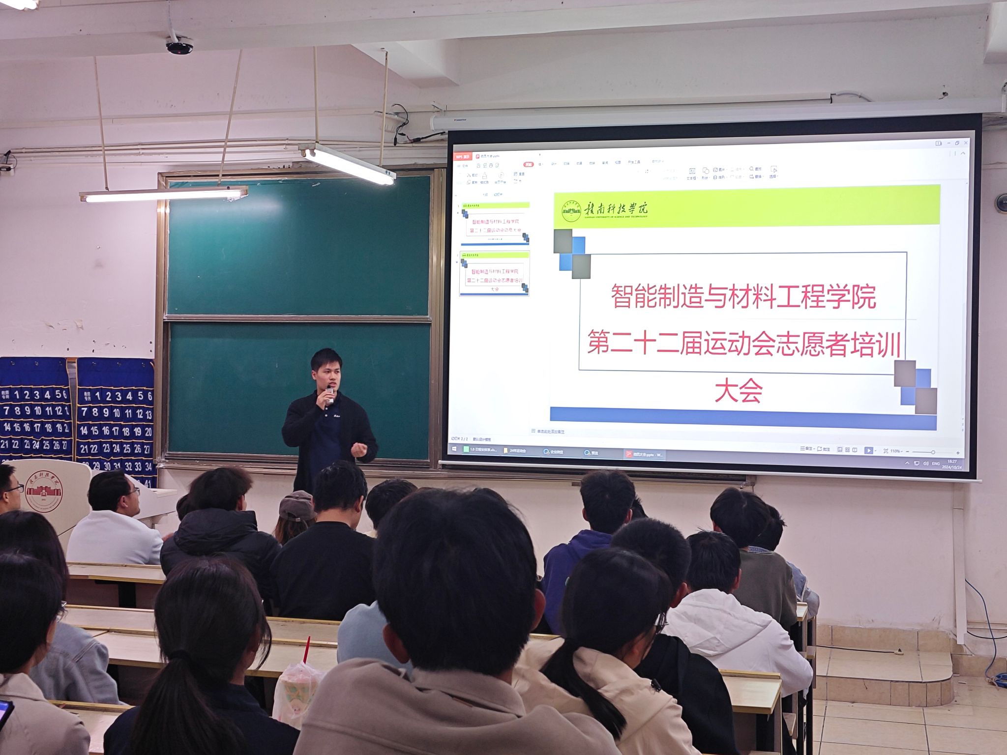 本网讯:为备战我校第二十二届运动会,点燃运动员们的激情。10月24日晚,太阳成集团tyc151cc于崇善楼Z2D1召开第二十二届运动会动员大会。太阳成集团tyc151cc学工负责人肖志华、团委负责人卢名亮、全体辅导员、全体运动员、学生会全体成员、班助全体成员、所有新生班级班长和团支书、党支部学生负责人、志愿者服务队队长参加了这场会议。